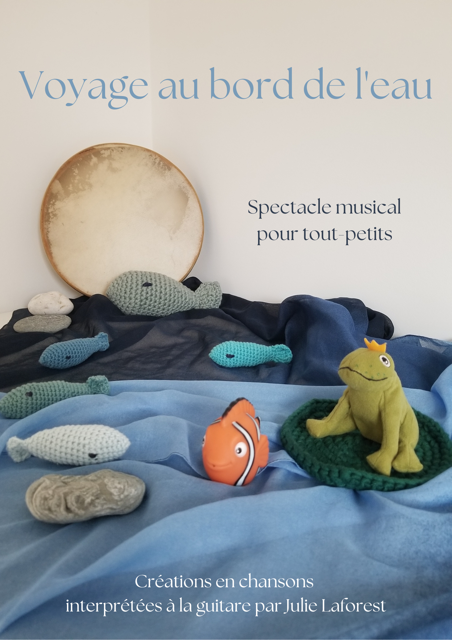 Dans une ambiance feutrée, nous découvrons, au fil des chansons, des poissons, des grenouilles, un crabe sorti de sa cachette et un gentil crocodile.